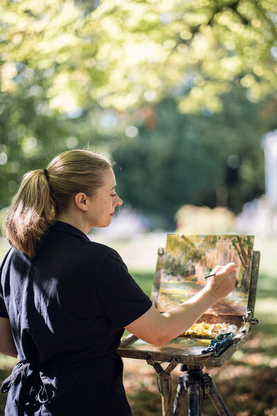 Begin your week inside the chateau with a focus on the fundamentals that elevate plein air work. Valérie will guide you through composition, colour theory, and process, with the chance to experiment using water-soluble oils. The day closes with a small finished painting that sets the tone for the week ahead.